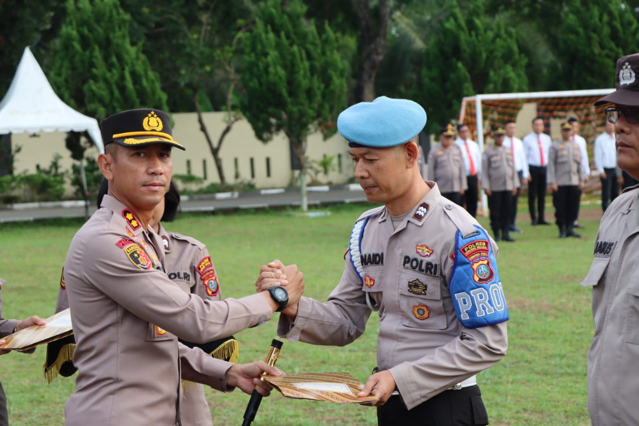 Piagam Penghargaan diberikan kepada 5 (Lima) Personil Polres Sergai termasuk ASN, dan PHL yakni, Aiptu Junaidi Ps.Kanit Provos Sie Propam Polres Sergai, Aiptu Zendri Barus, S.Sos, Ps.Kaur Mintu Sat Binmas, Aiptu M.P. Ritonga, Ps.Kasium Polsek Firdaus, Pengatur Tk.I Asni Banum Sat Intelkam, dan Suwanto Hasibuan PHL Bag SDM.