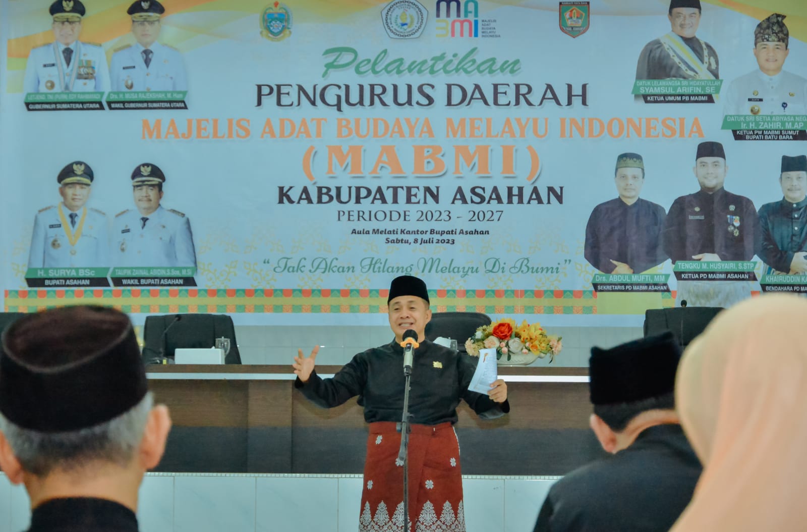 Pelantikan ditandai dengan penyerahan bendera pataka MABMI dan penyerahan SK kepengurusan. Adapun pengurus MABMI Asahan yang dilantik yaitu Tengku M. Husyairi, S.STP., sebagai ketua, Drs. Abdul Mufti, M.M., sebagai sekretaris dan Khairuddin Kasri, S.Ag., sebagai bendahara.