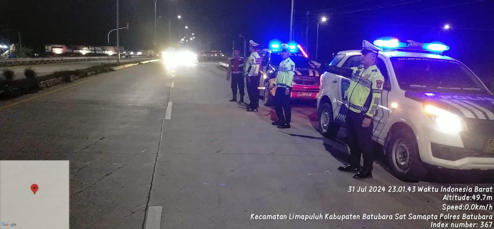Patroli Gabungan yang menggunakan kendaraan roda 4 Sat Samapta, dan Sat Lantas kali ini menyusuri jalanan di Simpang Pintu Tol Lima Puluh, dan Simpang MHB, Lima Puluh, Batu Bara, Sumatera Utara.