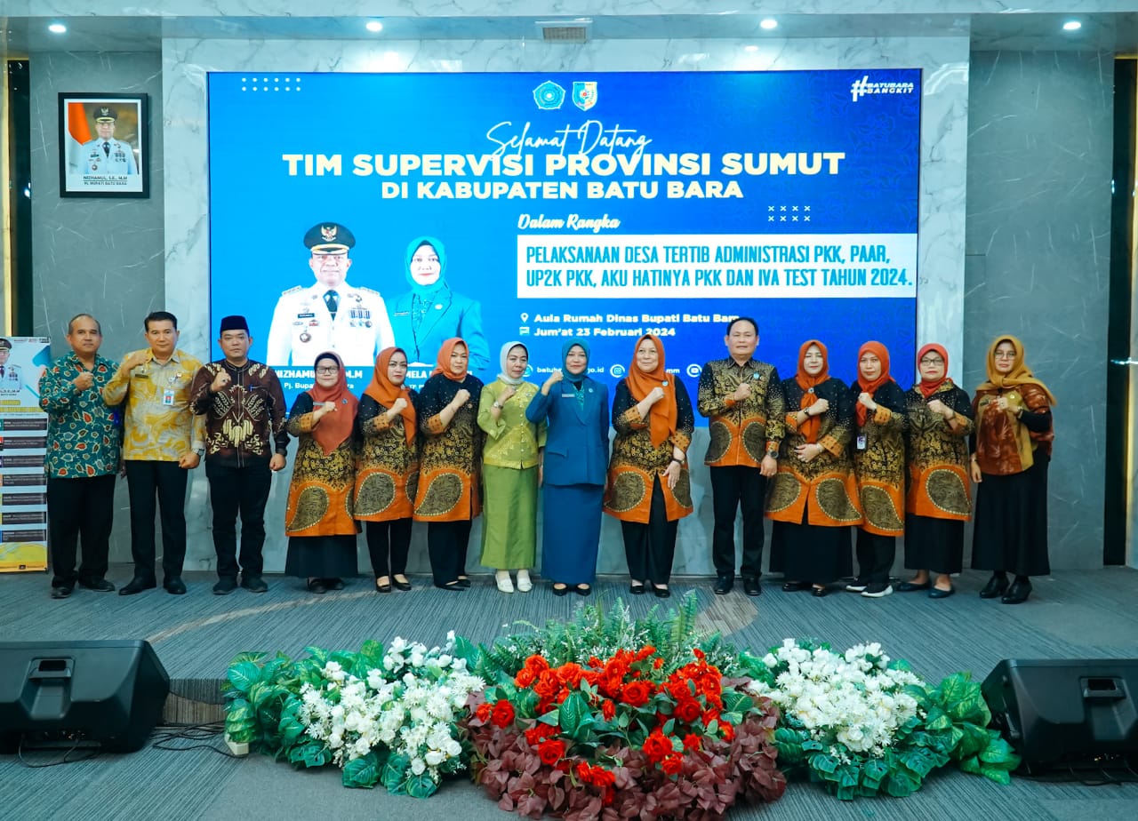 BATUBARA, Mediafimsus.com – Tim supervisi Tim Penggerak Pemberdayaan Kesejahteraan Keluarga (TP PKK) Provinsi Sumatera Utara melakukan kunjungan ke Kabupaten Batu Bara dalam rangka supervisi Desa Percontohan Pelaksana Tertib Administrasi PKK, Pola Asuh Anak Remaja (PAAR), UP2K PKK, Hatinya PKK, Iva Test tahun 2024, di aula Rumah Dinas Bupati Batu Bara, Komplek Perumahan Inalum, Tanjung Gading, Kecamatan Sei Suka, Jumat (23/02/2024).
