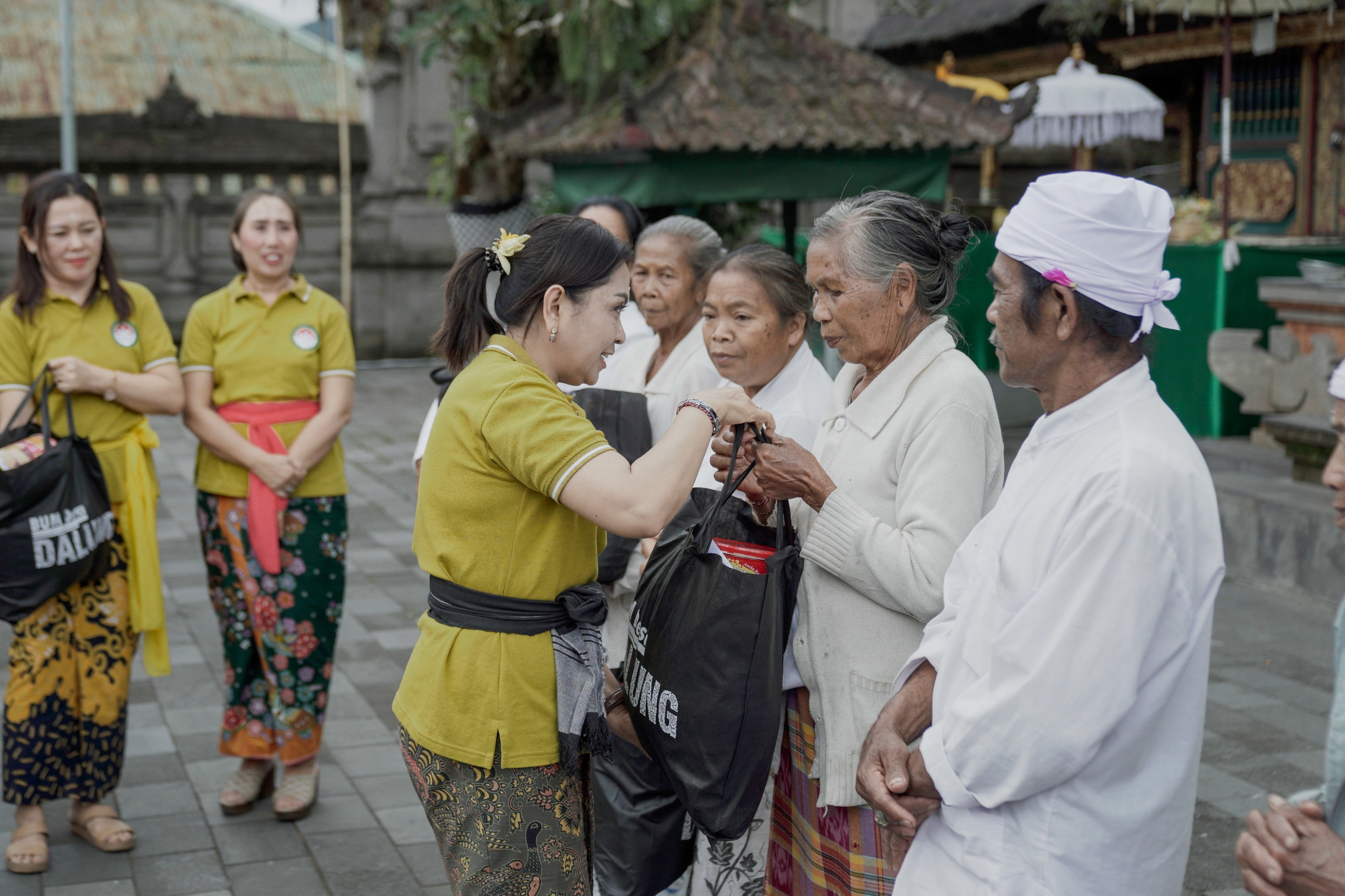 Badung,Mediatimsus.com-Dharma Wanita Persatuan (DWP) Kabupaten Badung yang dipimpin Nyonya Rasniathi Adi Arnawa memberikan paket sembako kepada para Pemangku Pura Penataran Agung Pucak Mangu. Selain pemberian sembako juga dilaksanakan acara bersih-bersih (mereresik) dan sembahyang bersama di Pura Penataran Agung Pucak Mangu, Selasa (23/1).