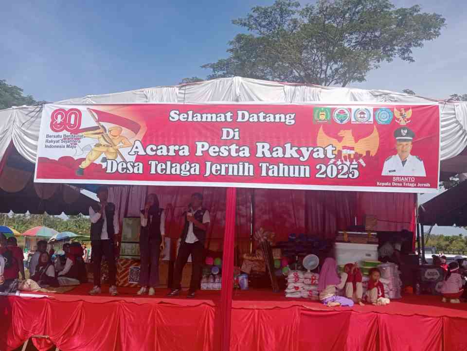 Srianto kepala Desa Telaga Jernih ” mengatakan kami pemerintah Desa Telaga Jernih dalam rangka menyambut hari kemerdekaan ulang tahun republik indonesia ke 80 melaksanakan pesta rakyat bertujuan untuk membawa masyarakat desa telaga jernih khususnya supaya kedepannya lebih bersatu, akur, makmur dan juga bersama sama dengan pemerintah Desa Telaga Jernih membangun desa degan baik.