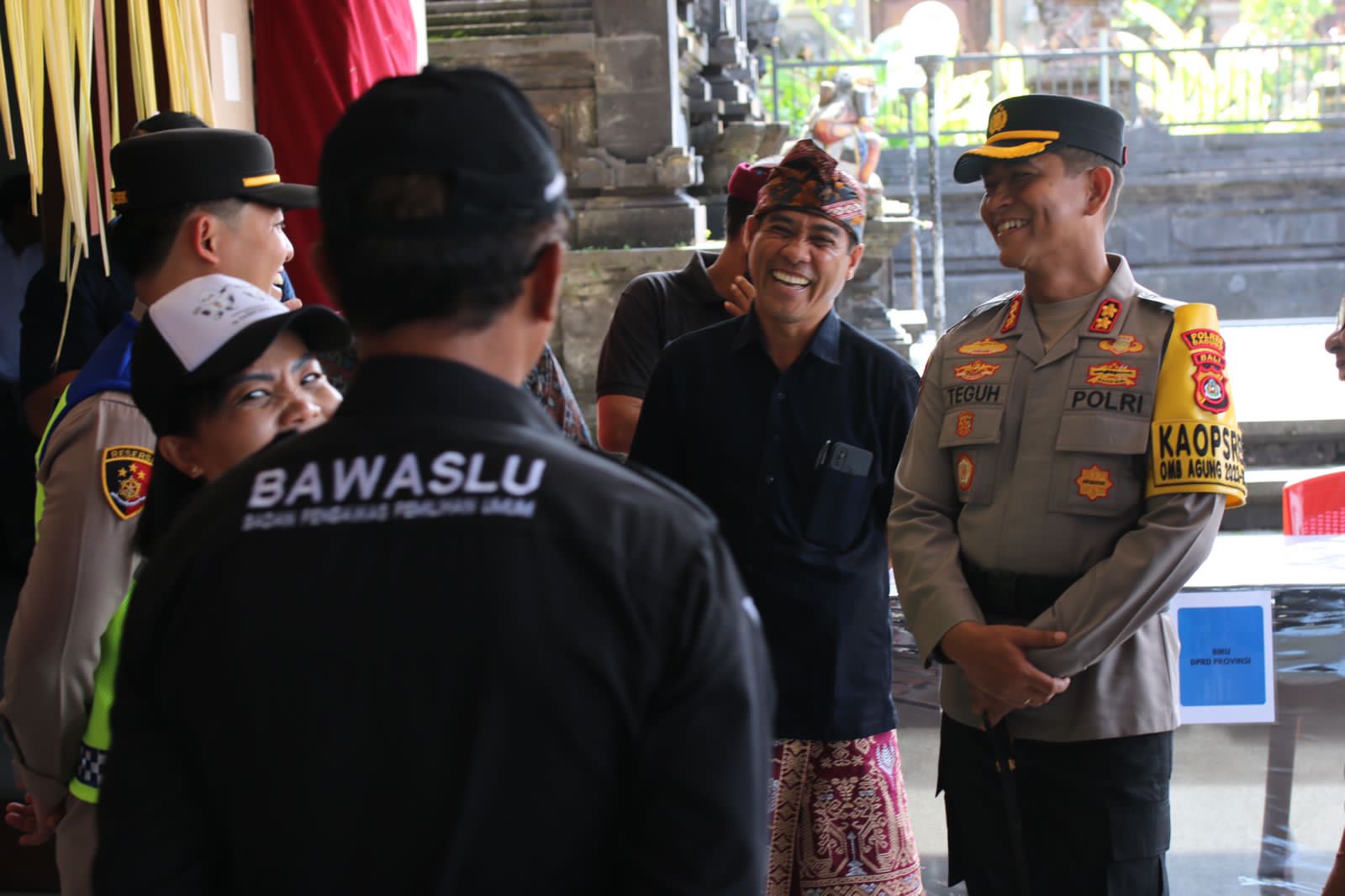 Mangupura,Mediatimsus.com- Kepala Kepolisian Resor Badung AKBP Teguh Priyo Wasono, SIK di dampingi Forkompinda Kabupaten Badung, usai pimpin apel Serpas tahap Pemungutan suara Pemilu 2024 langsung turun melakukan pengecekan kesiapan perlengkapan di TPS 48 & 49 di Balai Banjar Gaji Desa Adat Padang Luwih, Desa Dalung, Kecamatan Kuta Utara, Kabupaten Badung, Bali. Rabu, (13/2/2024) pagi pukul 10.00 WITA.