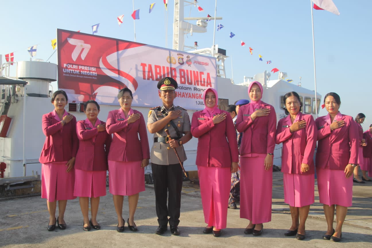 Kapolres Badung didampingi Ketua Bhayangkari Cabang Badung Ny. Levi Teguh Priyo Wasono mengatakan kegiatan tabur bunga di Darmaga Benoa ini dalam rangka memperingati Hari Bhayangkara ke-77 tahun 2023.
