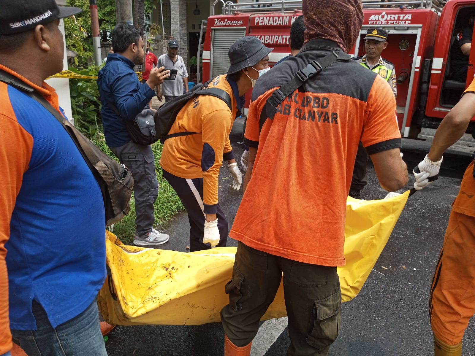 Petugas pemadam kebakaran dari BPBD Gianyar dibantu warga sekitar berusaha memadamkan api. Namun, api baru dapat dipadamkan setelah satu jam kemudian.