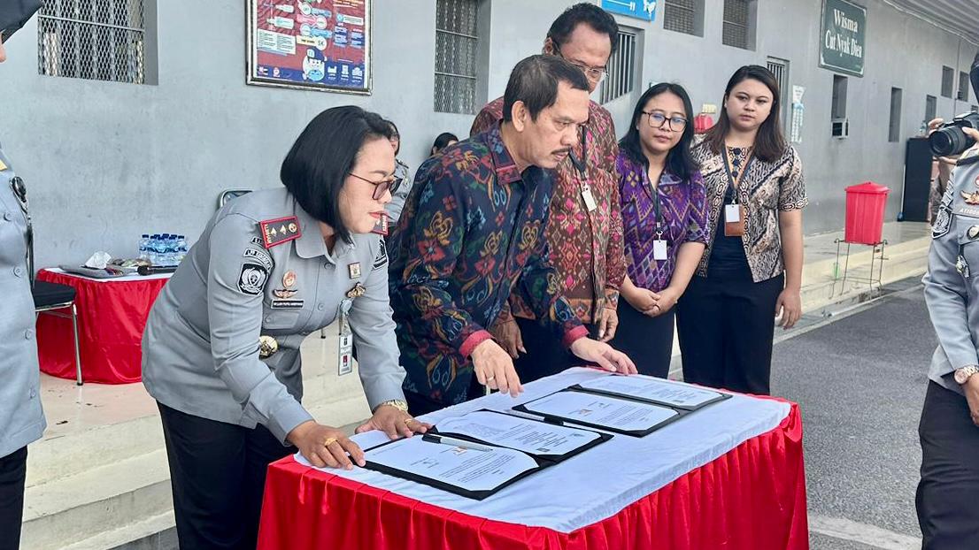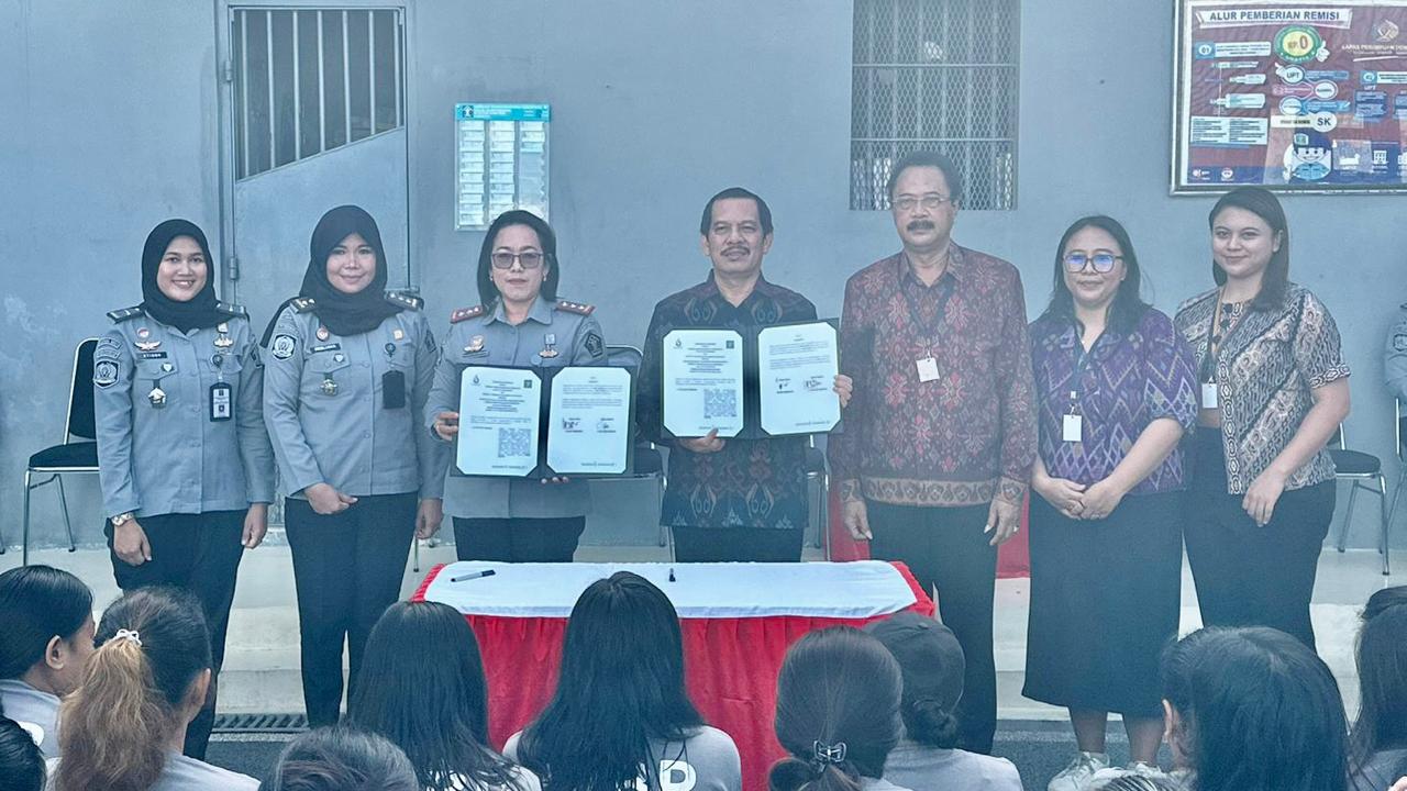 BADUNG,Mediatimsus.com – Demi tingkatkan kualitas program pembinaan bagi Warga Binaan, LPP Kerobokan, Kanwil Kemenkumham Bali resmi jalin kerjasama dengan ITB STIKOM Bali, Selasa (06/02). Hadir secara langsung Rektor ITB STIKOM Bali, Dadang Hermawan didampingi Wakil Rektor III Bidang Kerja Sama dan Inovasi, I Made Sarjana beserta tim dan diterima oleh Kalapas Perempuan Kerobokan, Ni Luh Putu Andiyani beserta pejabat struktural dan staff di halaman belakang Lapas Perempuan Kerobokan.
