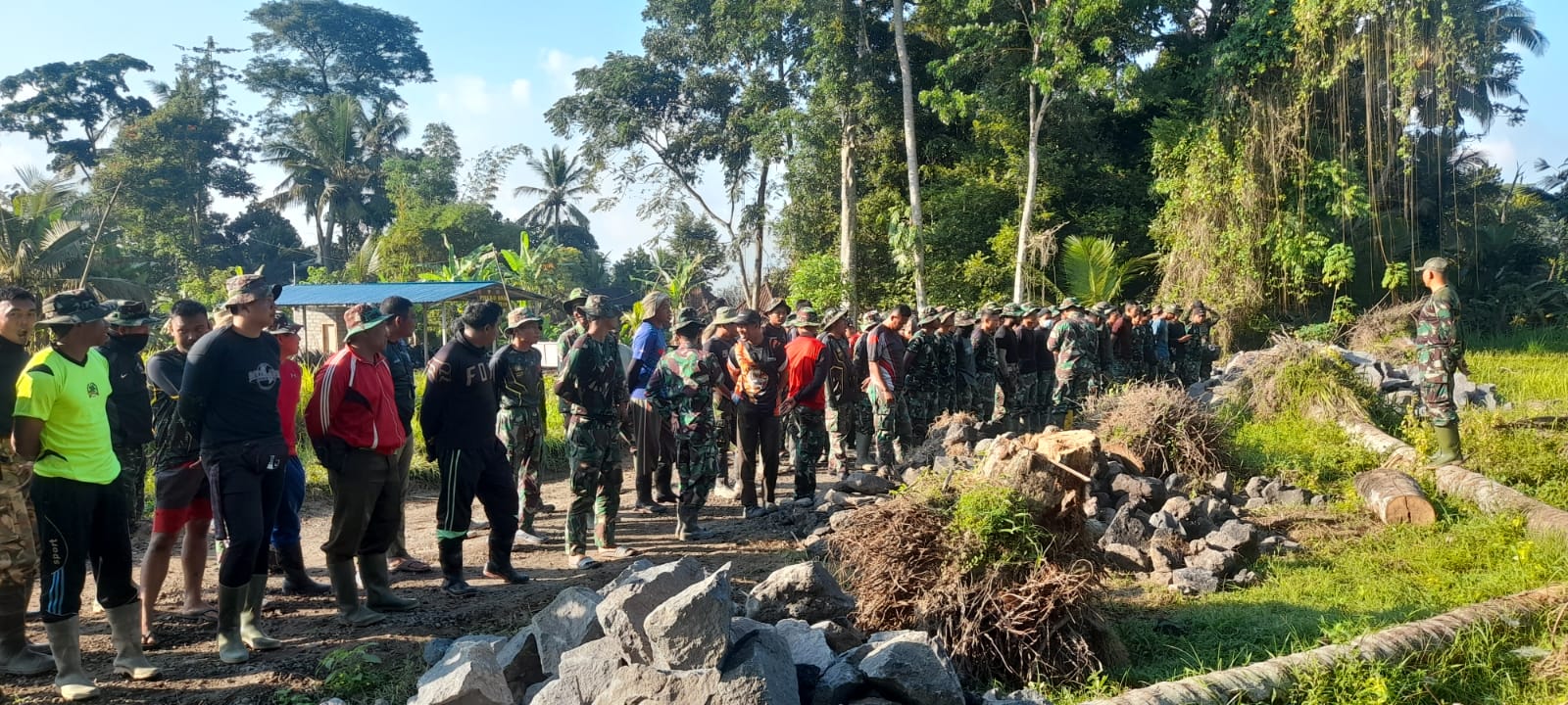 Sebelum melaksanakan kegiatan Pelda Dewa Gunawan selaku Batih Satgas TMMD mengambil apel anggota yang terlibat Satgas dan mengecek kesehata anggota Satgas serta memberikan pengarahan tentang tugas yang harus dikerjakan hari ini pengecoran senderan dan pembuatan gorong-gorong Pipa Beton tanpa tulangan dengan ukuran masing-masing panjang 6 meter serta mwmbuat sarana MCK sebanyak 1 Unit”tegasnya