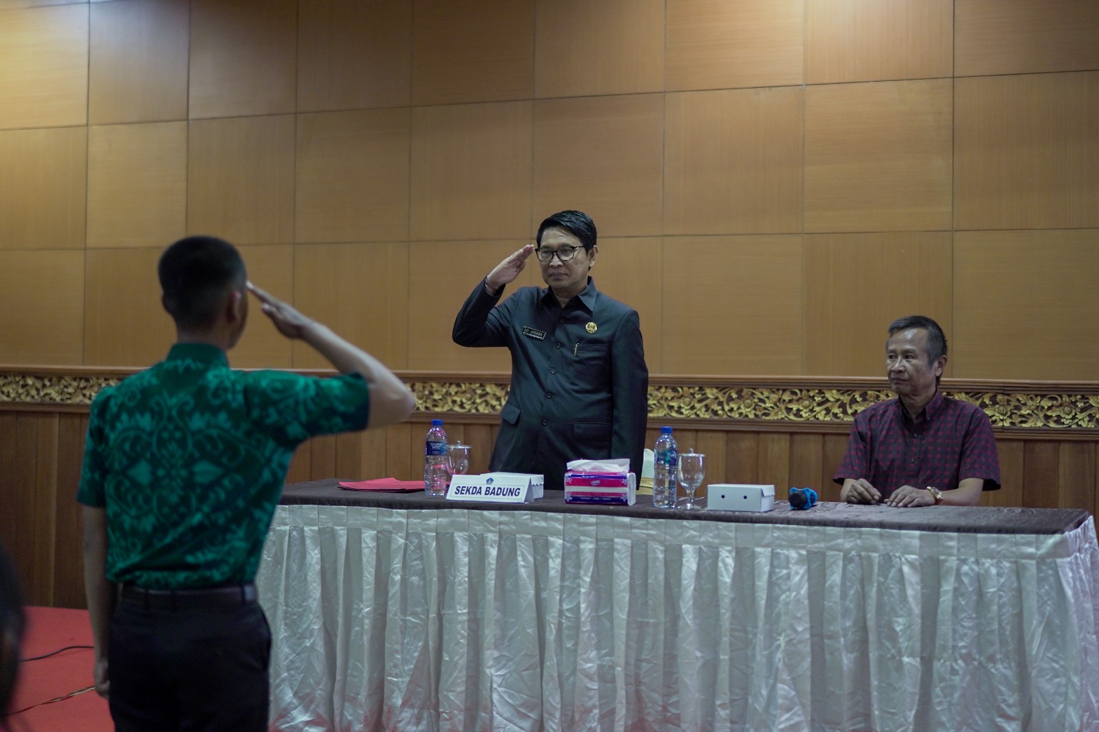 Turut mendampingi Sekda Badung, Kepala KesbangpolLinmas Kabupaten Badung, I Nyoman Suendi beserta jajaran dan 71 Calon Paskibra Kabupaten Badung Tahun 2023.