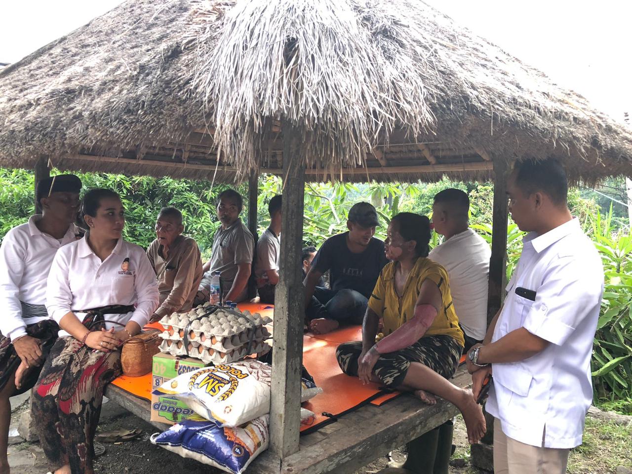 Pengurus partai besutan Prabowo Subianto itu mengunjungi Ni Made Sukerti, warga Br. Ijo Gading, Desa Seraya Tengah, Kecamatan Karangasem, yang dapur rumahnya dilalap si jago merah akibat ledakan tabung gas.