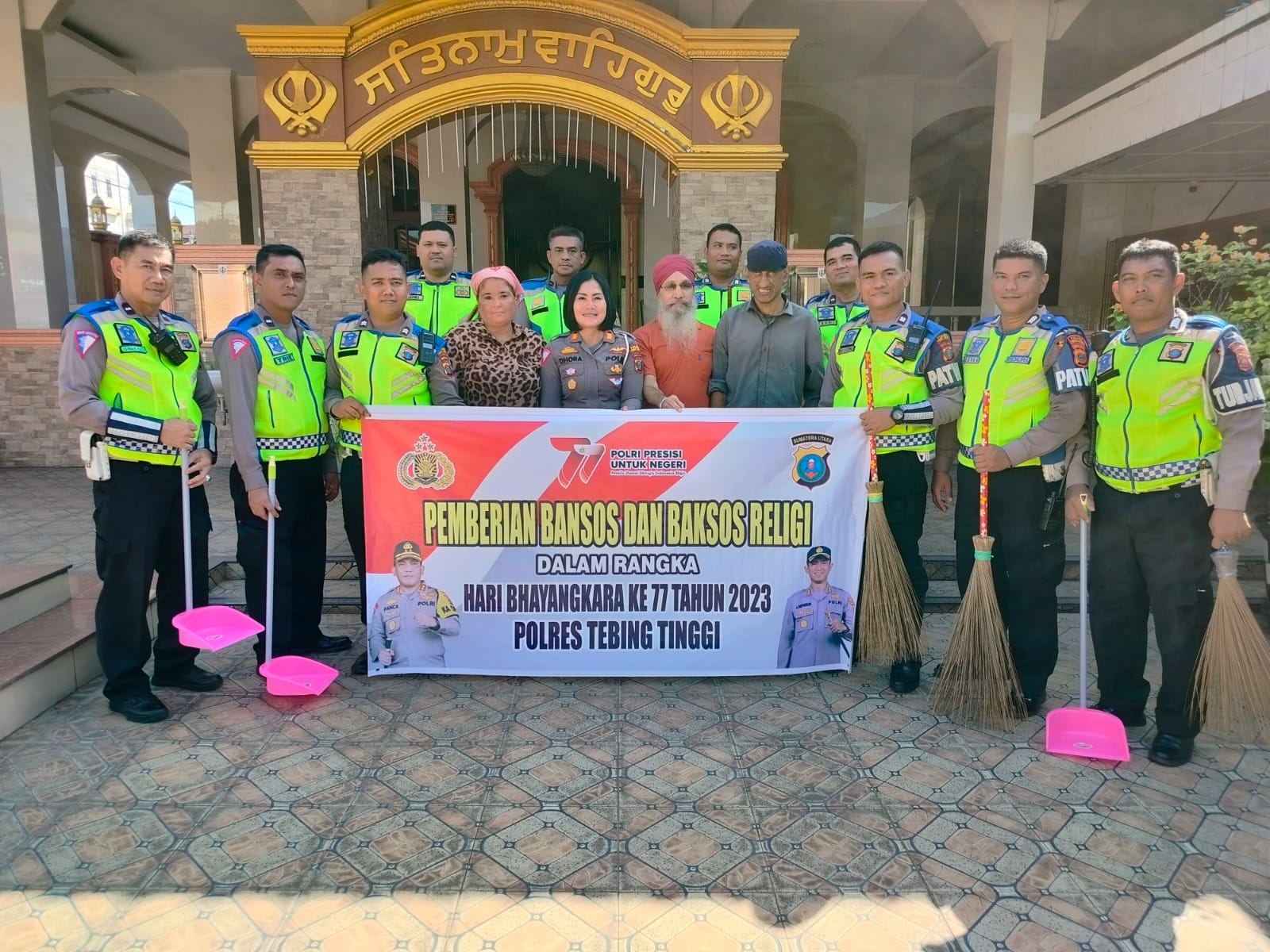 Kasat Lantas Polres Tebing Tinggi AKP Dhoraria S. Simanjuntak, S.H, M.H beserta 11 Personil Sat Lantas melaksanakan giat Bakti Sosial (Baksos) dalam rangka Hari Bhayangkara Ke-77 Tahun 2023 di Kuil Sink Jalan T Imam Bonjol Kota Tebing Tinggi, Sumatera Utara.